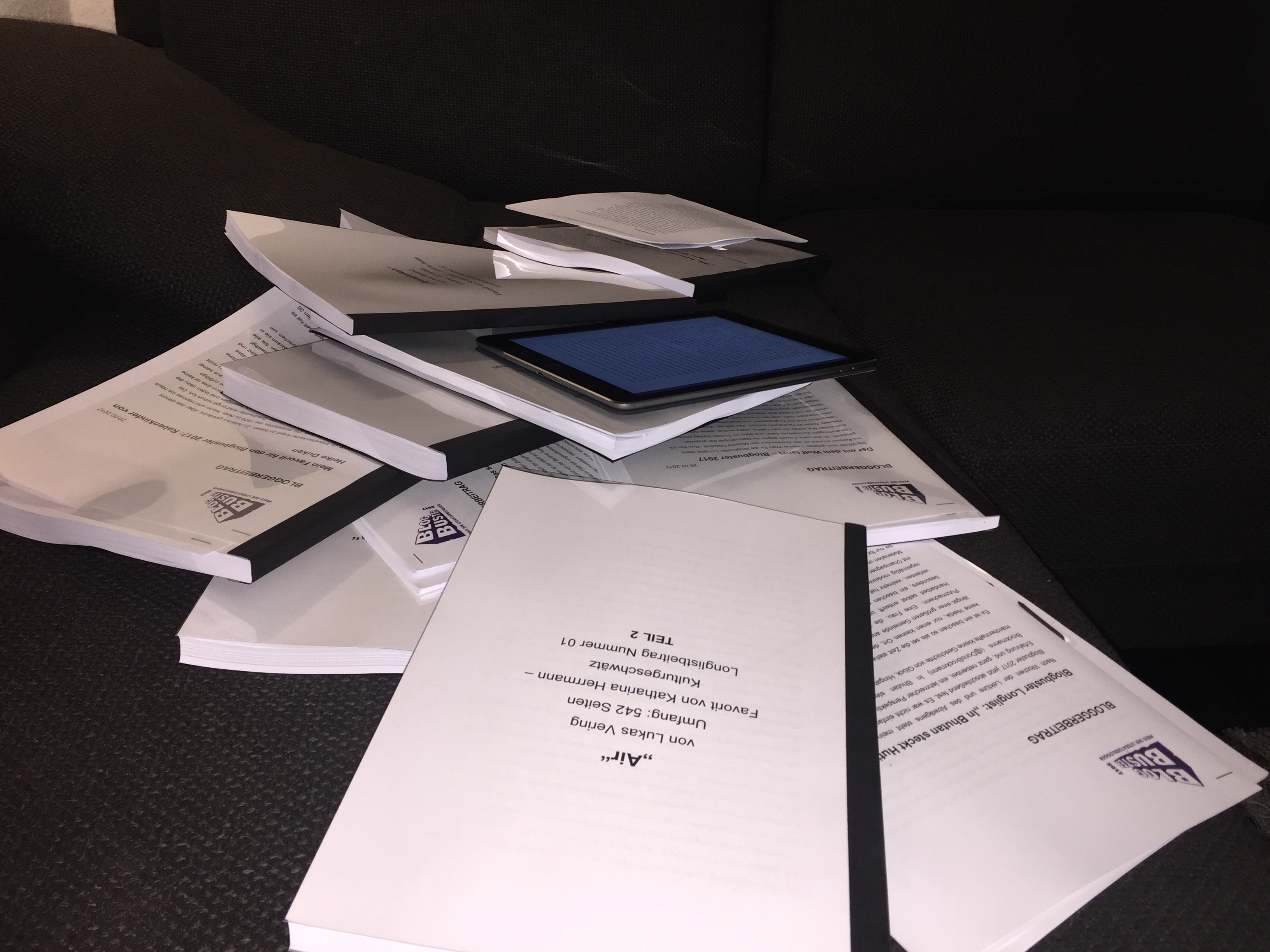 Es tut mir leid, aber ich kann grad nicht – weder reden, noch schreiben. Bin nur noch am lesen, mache kaum noch etwas anderes. Ich lese DIN A4 Ausdrucke, ich lese PDFs auf dem Reader, ich lese in der Bahn, im Flugzeug, ich lese im Bett und am Frühstückstisch. Ich lese bis mir die Augen tränen, bis die Wörter und Buchstaben verschwimmen. So viel habe ich in meinem ganzen Leben noch nicht gelesen.